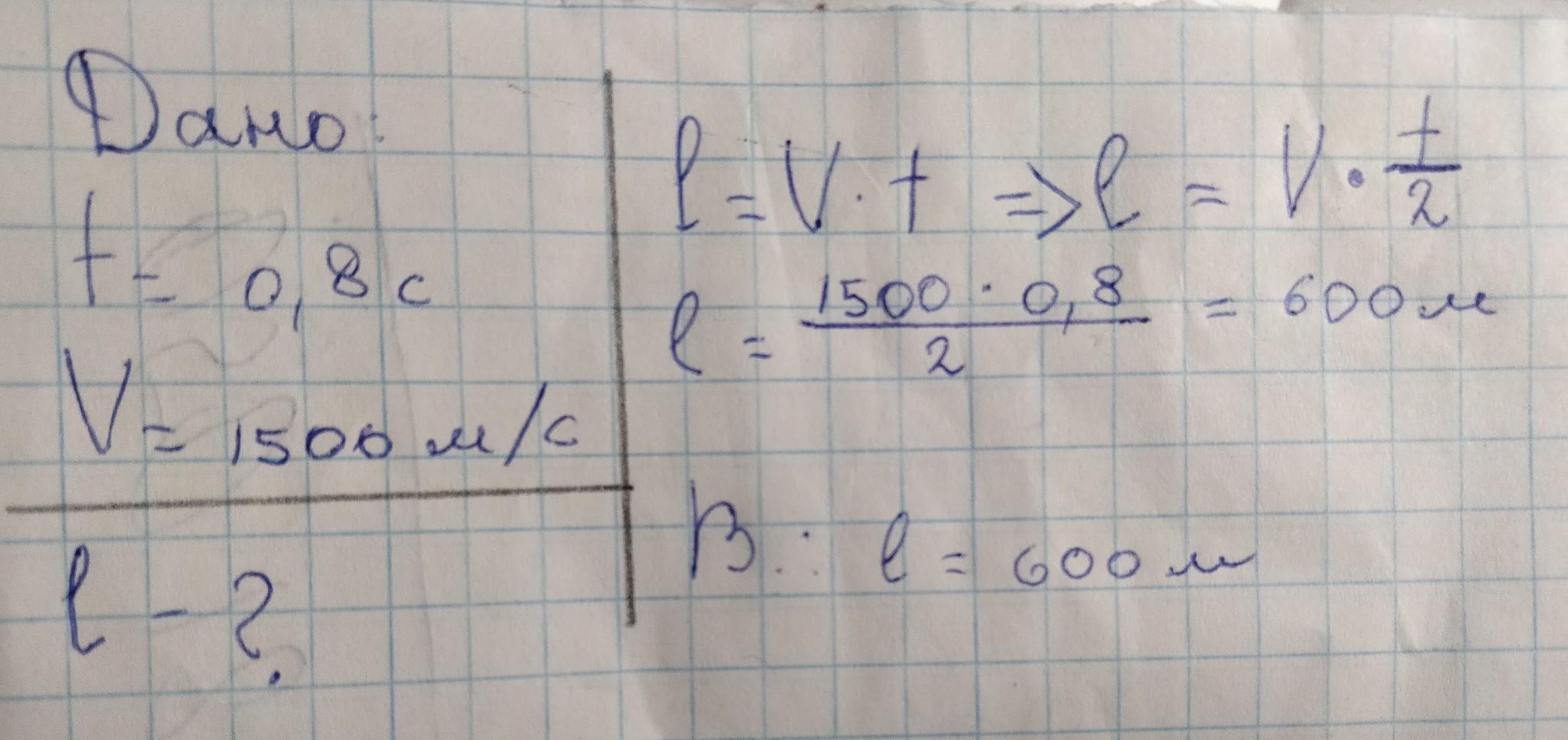 Якою є глибина моря, якщо ультразвуковий сигнал, відбившись від морського дна, повернувся через 0,8 с після посилання?