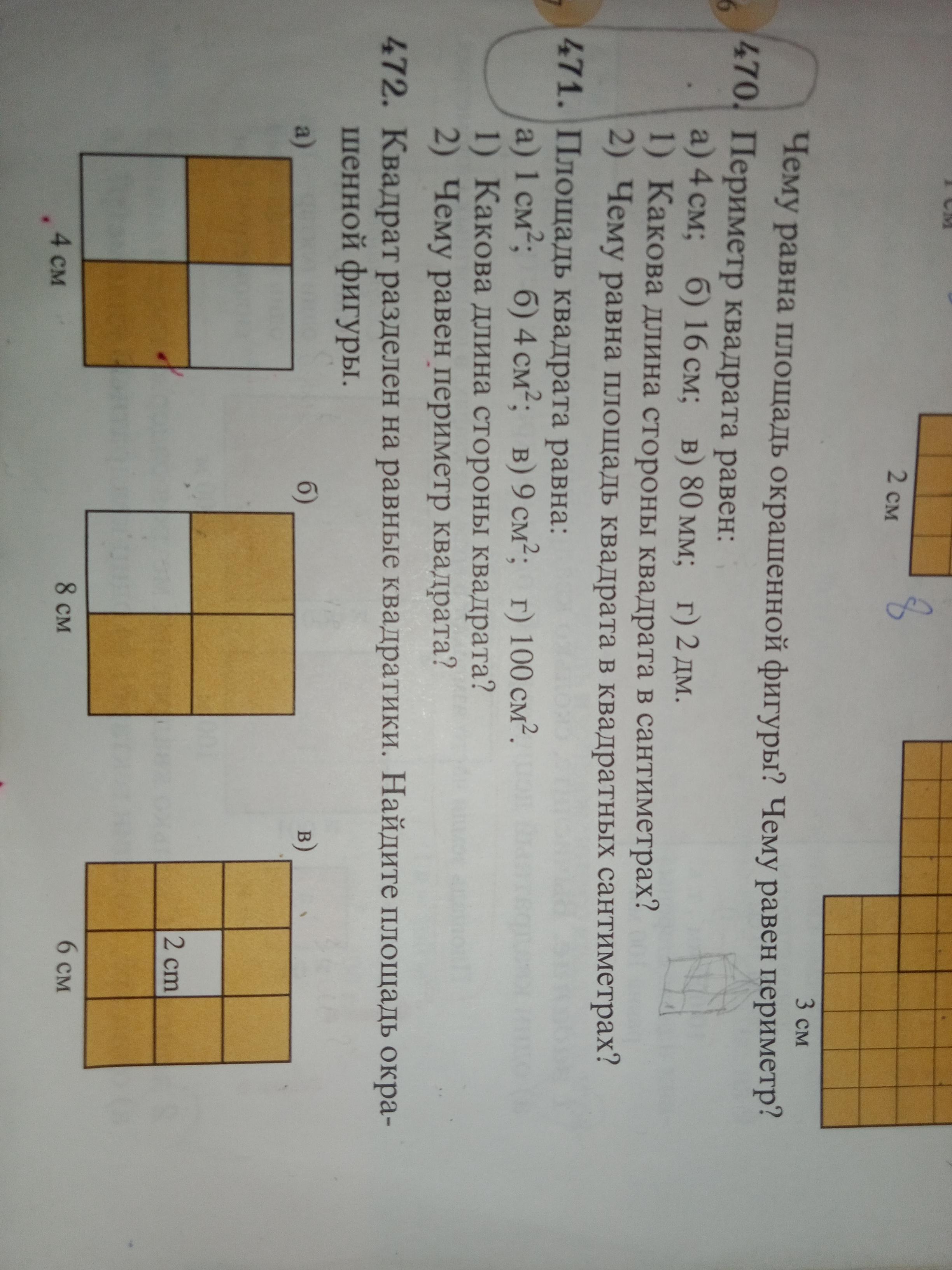 3. а) 1см² б) 16см² в) 4см² г) 25 см²