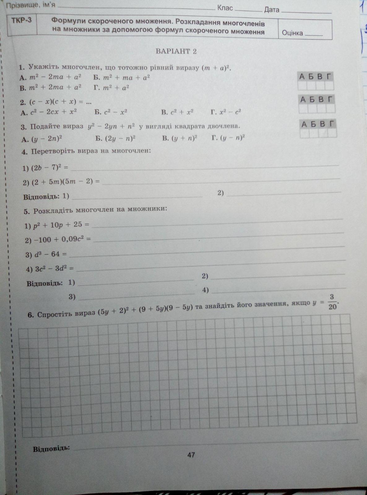 6) (5y+2)²+(9+5y)(9-5y)=25y²+20y+4+81-25y²=20y+85;
