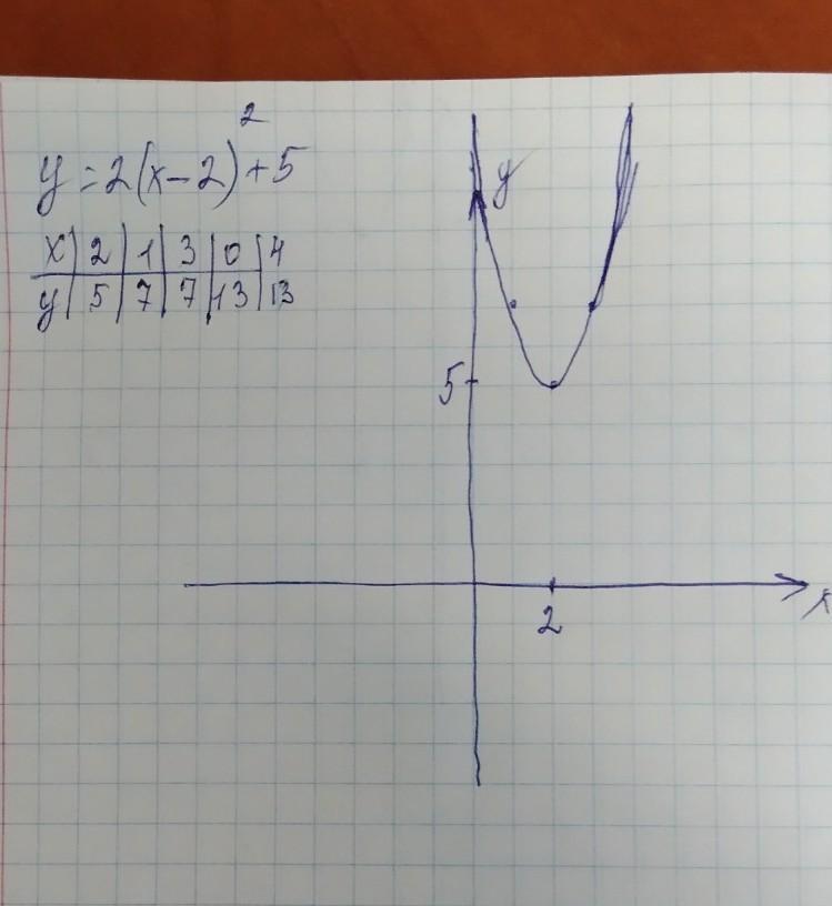 Вершина параболы находится в точке (2;5),об этом говорят числа -2 в скобке( пооси х сдвинута вправо на 2) и +5 за скобкой,сдвинута вверхна 5 ед.