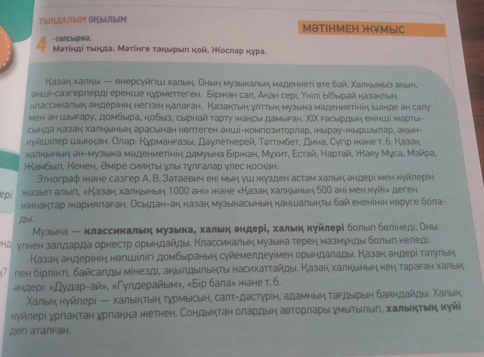 2.Қазақтардың ақын, әнші-сазгерлерінің атын ата.