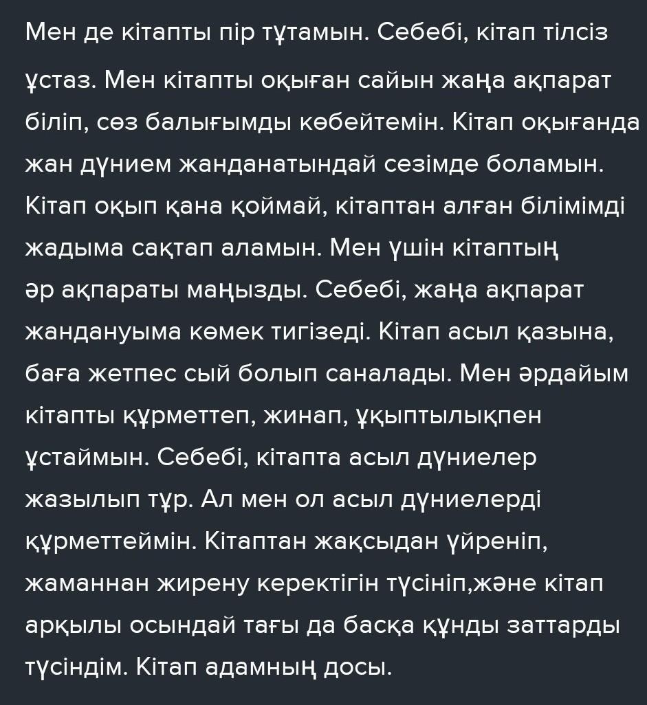 "Бұл дүниеде пір тұтар жалғыз ақ нәрсем бар,ол-кітап" Эссе жазу пожалуйста помогитееее