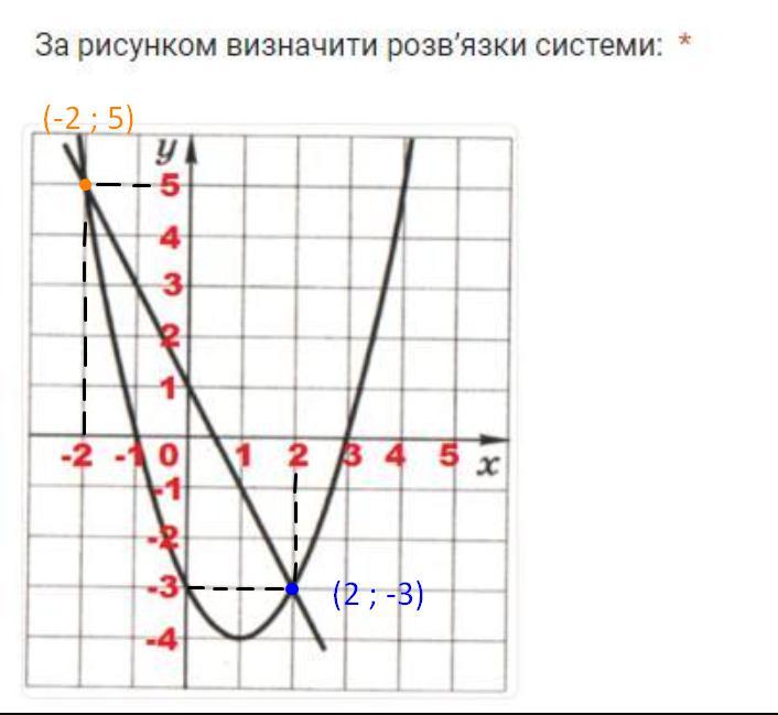 А решениями данной системы , как раз таки и будут точками пересечений данных графиков , а таковыми являются :