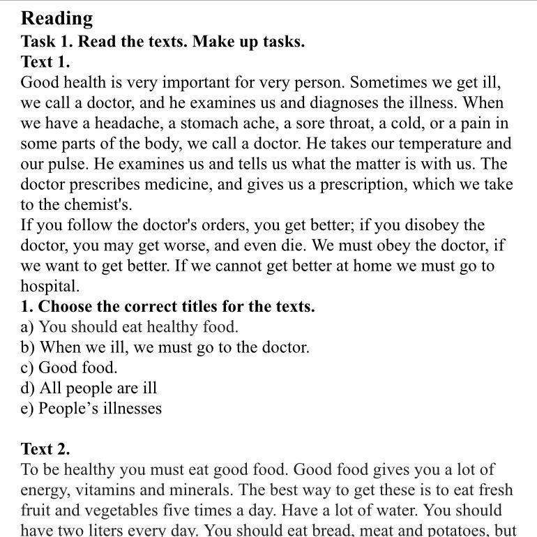 в тексте говорится про важность походов к докторам, b) переводится как "если мы заболеваем, мы должны идти к доктору"