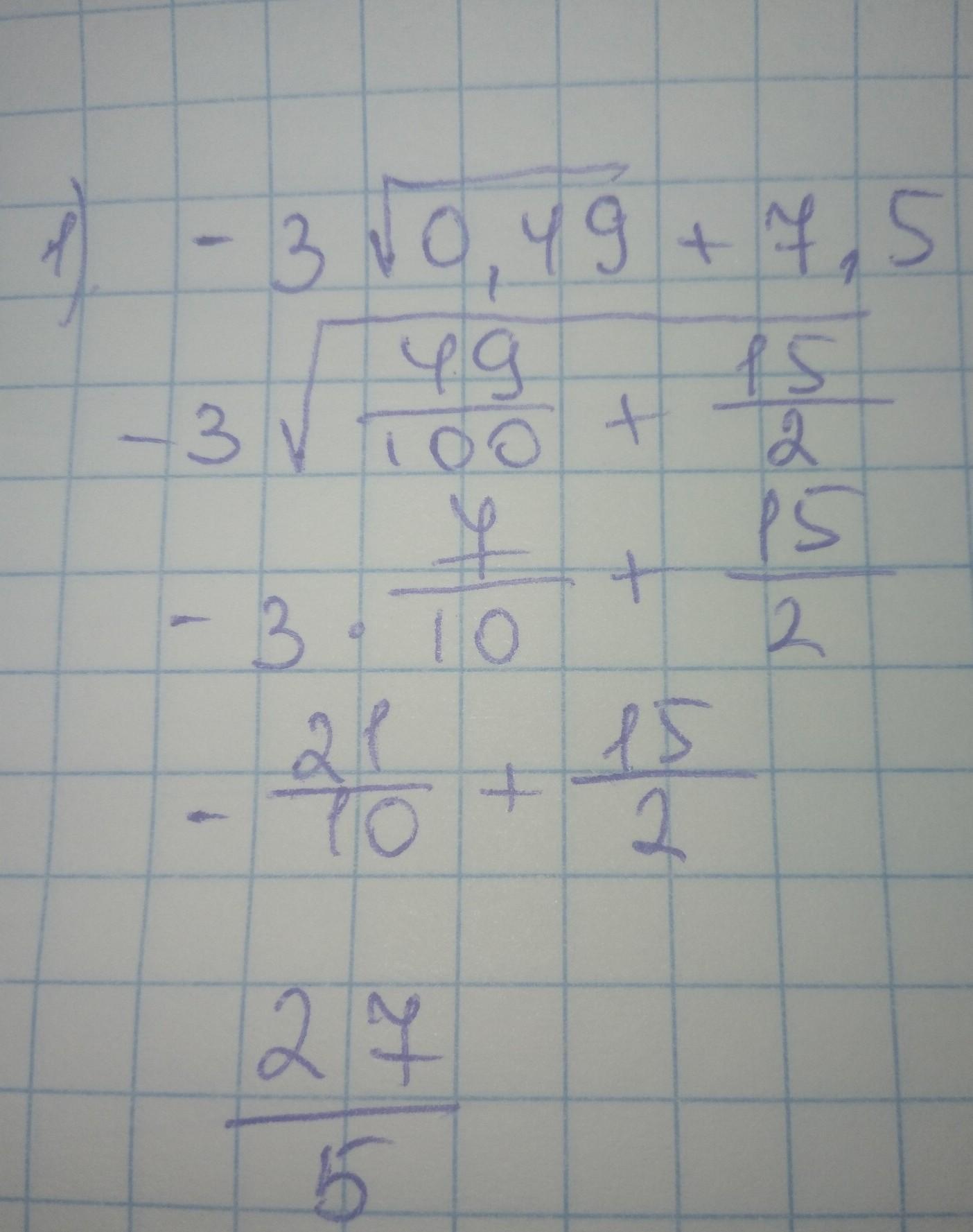 -3√0,49+7,5= -3•√0,7²+7,5=