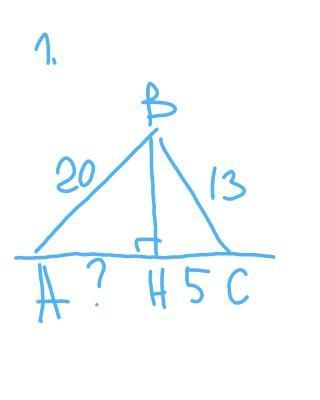 АН=√(АВ²-ВН²)=√(20²-12²)=√256=16 см
