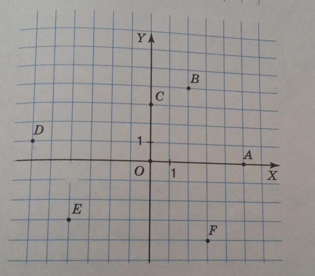 А(5,0), В(2,4), С(0,3), D(-6,1), F(3,-4), E(-4,-3)
