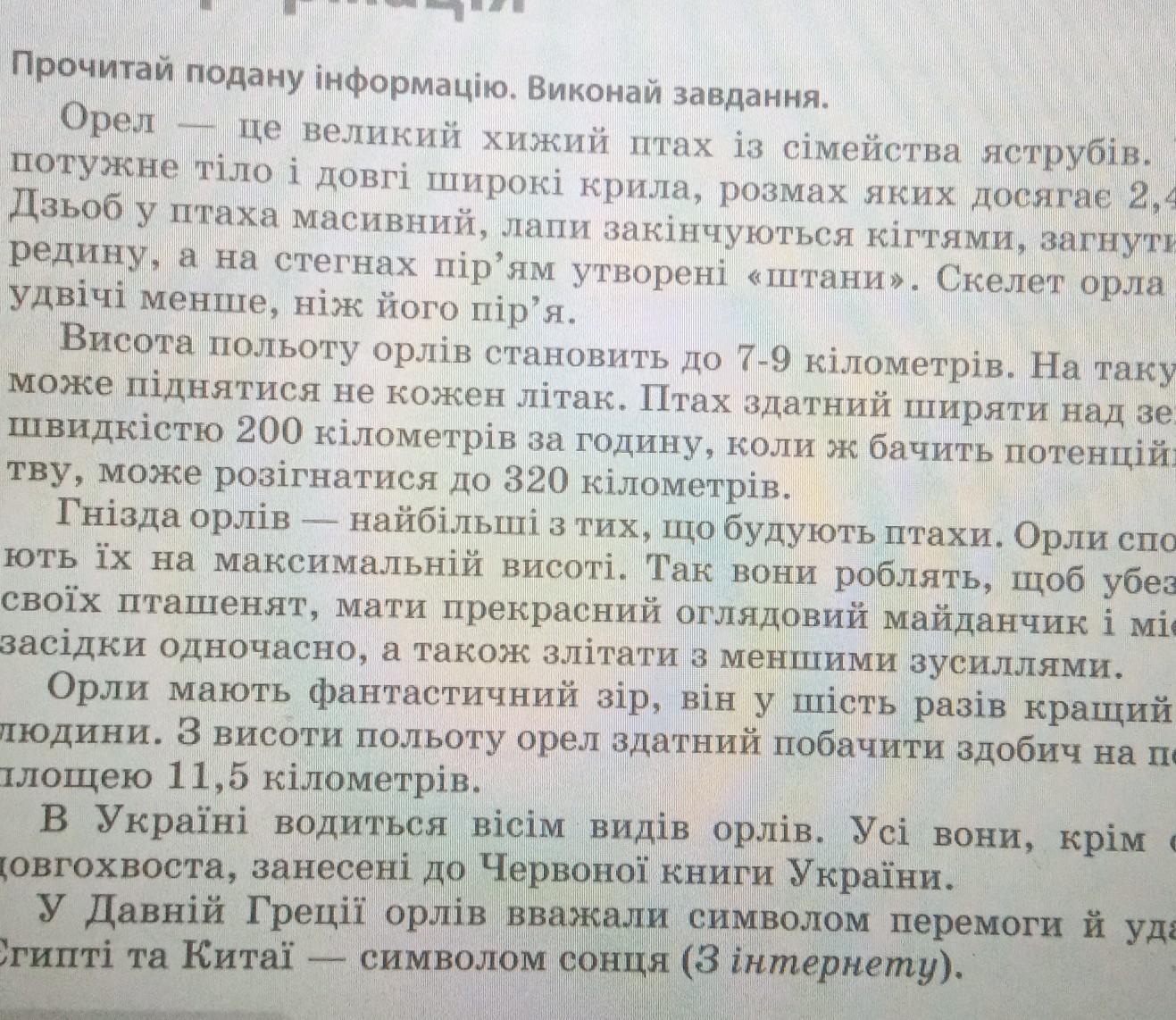 Проаналізуй подану інформацію, зосередивши увагу на її достовірності, повноті й доступності. Чи можна вважати вичерпною таку інформацію про орлів? Відповідь обгрунтуй