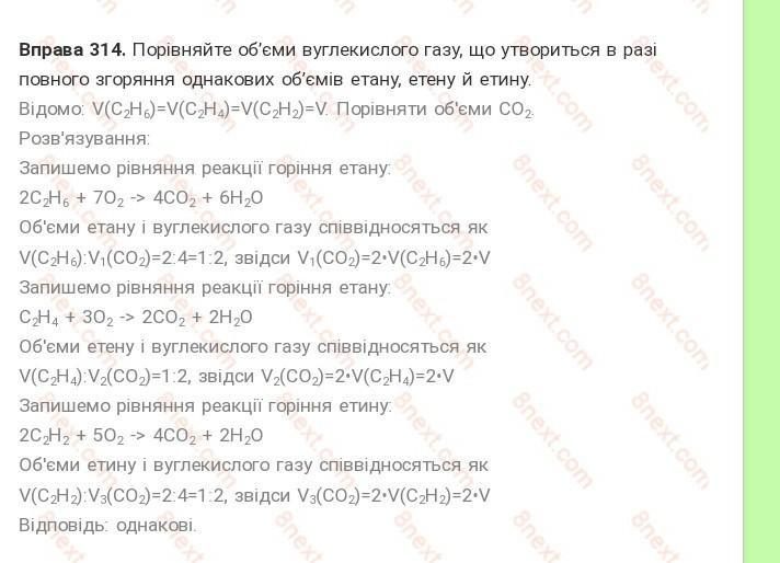 порівняйте об'єми вуглекислого газу що утвориться в разі повного згоряння однакових об'ємів етану,етену,етину