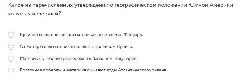 Какое из перечисленных утверждений о географическом положении Южной Америки является неверным?