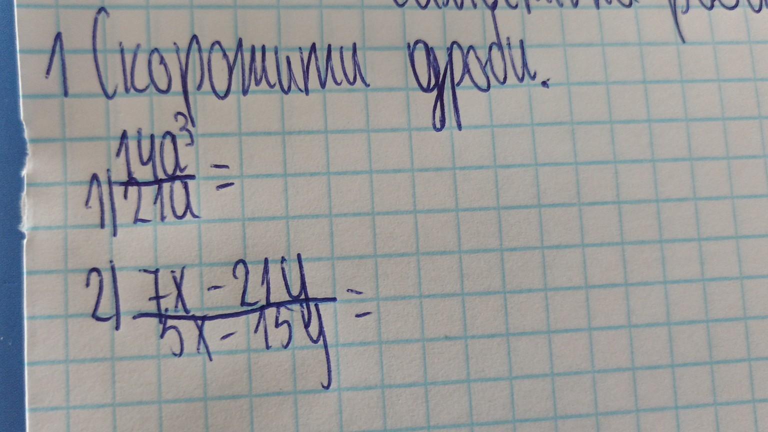 2) 7х - 21у / 5х - 15у = 7 / 5 = 1,4 (скоротили на (х - 3у))