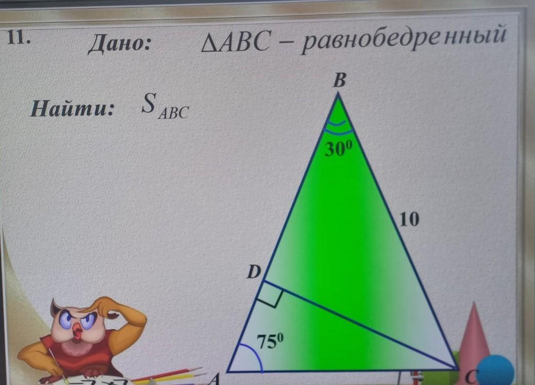 S(∆ABC)=½*AB*CD=½*10*5=25 ед²
