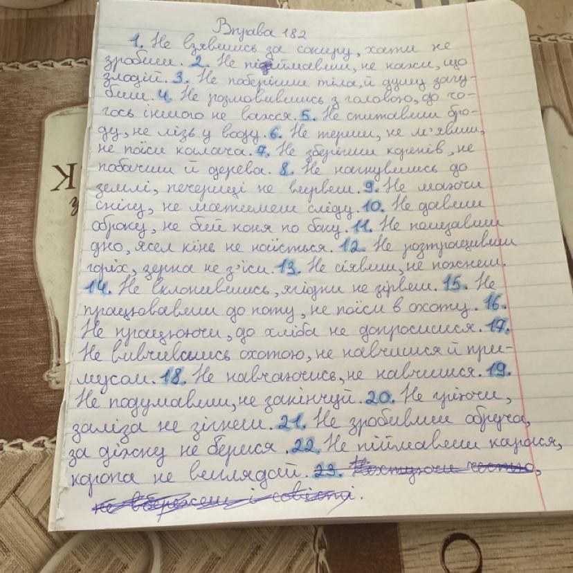 Там не вмістилося тому допишу сюди . 23. Не вдаривши по казану , дзвону не почуєш. 24 . Не замовивши рук, обличчя не вмиєш. 25. Не зігнувши гілки , дерева не нахилиш . 26. Не прицілившись , не влучиш .