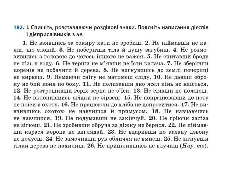182. Спишіть, розставляючи розділові знаки. Поясніть написання дієслів і дієприслівників з не.