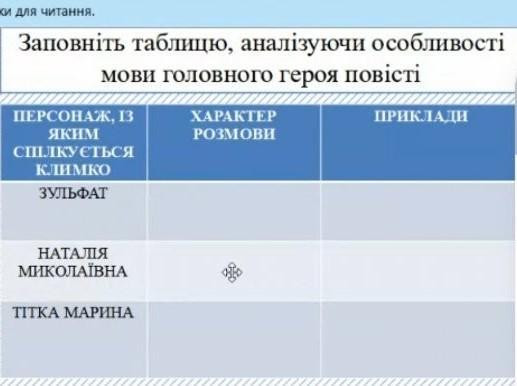 Объяснение:Зульфат Гарєєв. Друг Климка, онук дідуся Гарєєва з хлібопекарні. Хлопець ледь не щодня залишався ночувати у Климка, коли той залишився після втрати дядька сам. Зульфат допоміг Климкові позбутися щурів у ваговій і навести порядок у новому житлі. Зульфат "з гарячими рум'янцями на гострих смуглих вилицях, "був дужий хлопчик, хоча й нижчий від Климка, вважай, на голову", мав "вузькі й такі чорні, що аж різучі, очі". На базарі, коли здоровань з бородою насміхався з Наталі Миколаївни, Зульфат став на її захист, кинувши у чоловіка камінь. Хлопець допомагав вчительці переносити речі у вагову, приніс для маленької Олі свою колиску. Зульфат дуже хотів піти по сіль разом з Климком, але мусив залишитися, щоб допомагати вчительці. Він щодня виглядав Климка і хвилювався за нього. На його у Климка стріляють.