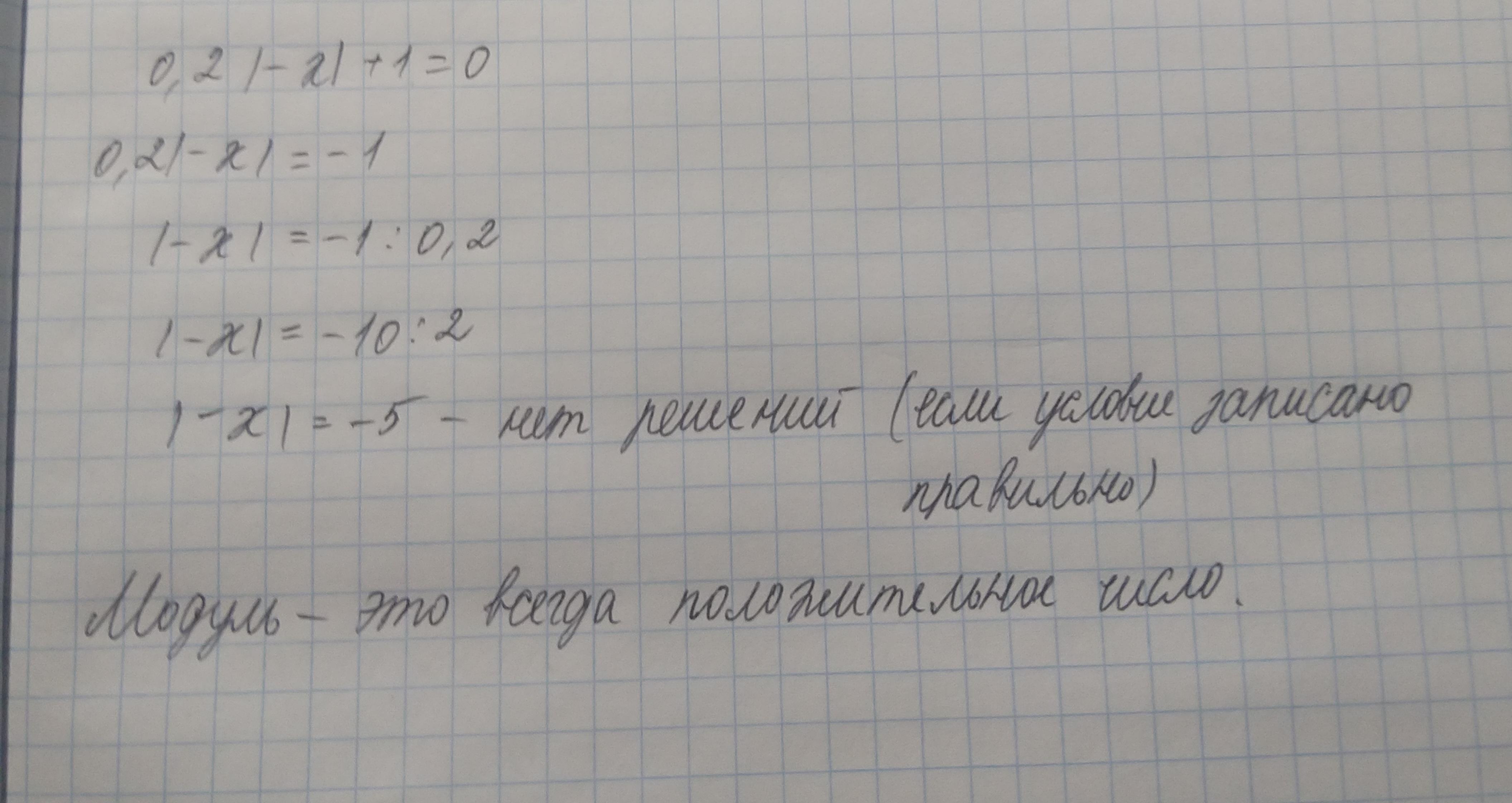 Нет корней, так как модуль числа всегда положительный или равен нулю