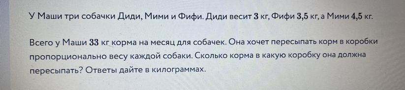 1 коробка = (3х) = 3 * 3 = 9 кг корма