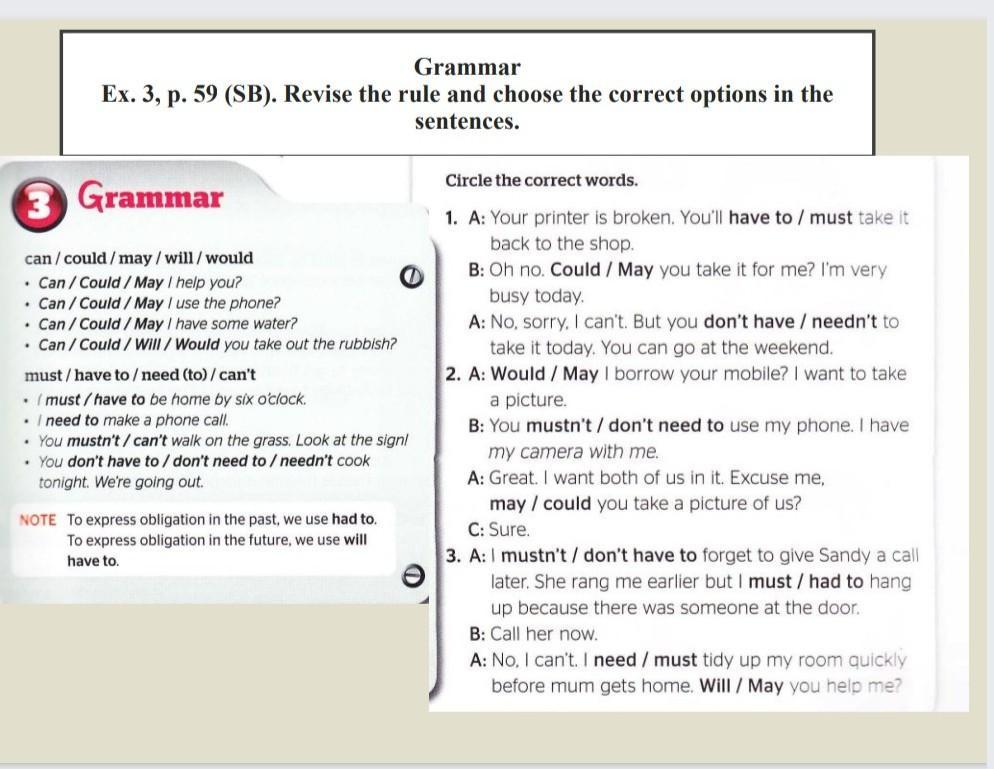 1 Can 2 Could 3 Can 4 Can 1 must 2 need 3 don't need