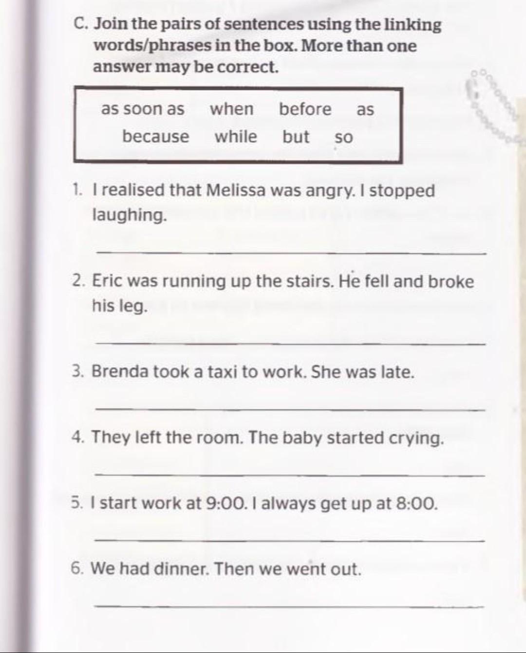 2. Пока Эрик бежал вверх по лестнице, он упал и сломал ногу.