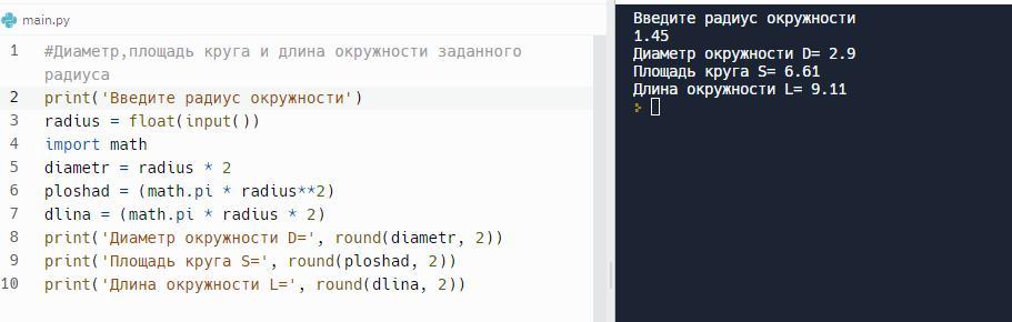 print('Длина окружности L=', round(dlina, 2))