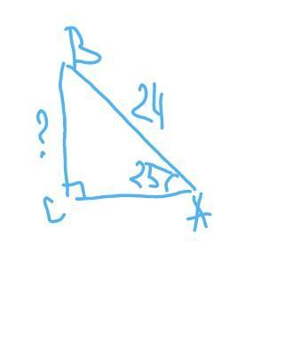 Знайдіть катет прямокутного трикутника, якщо гіпотенуза дорівнює 24 см, протилежний дО НЬОГО кут 25 градусів. Відповідь округлiть до цілих.