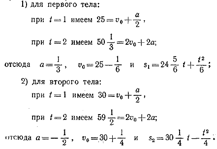 2.Чтобы найти v0 и а для каждого тела, подставляем в эту формулу приведенные в условиях задачи числовые данные: