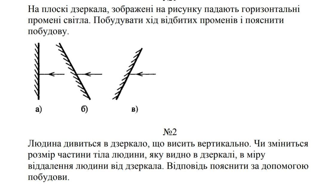 На плоскі дзеркала, зображені на рисунку падають горизонтальні