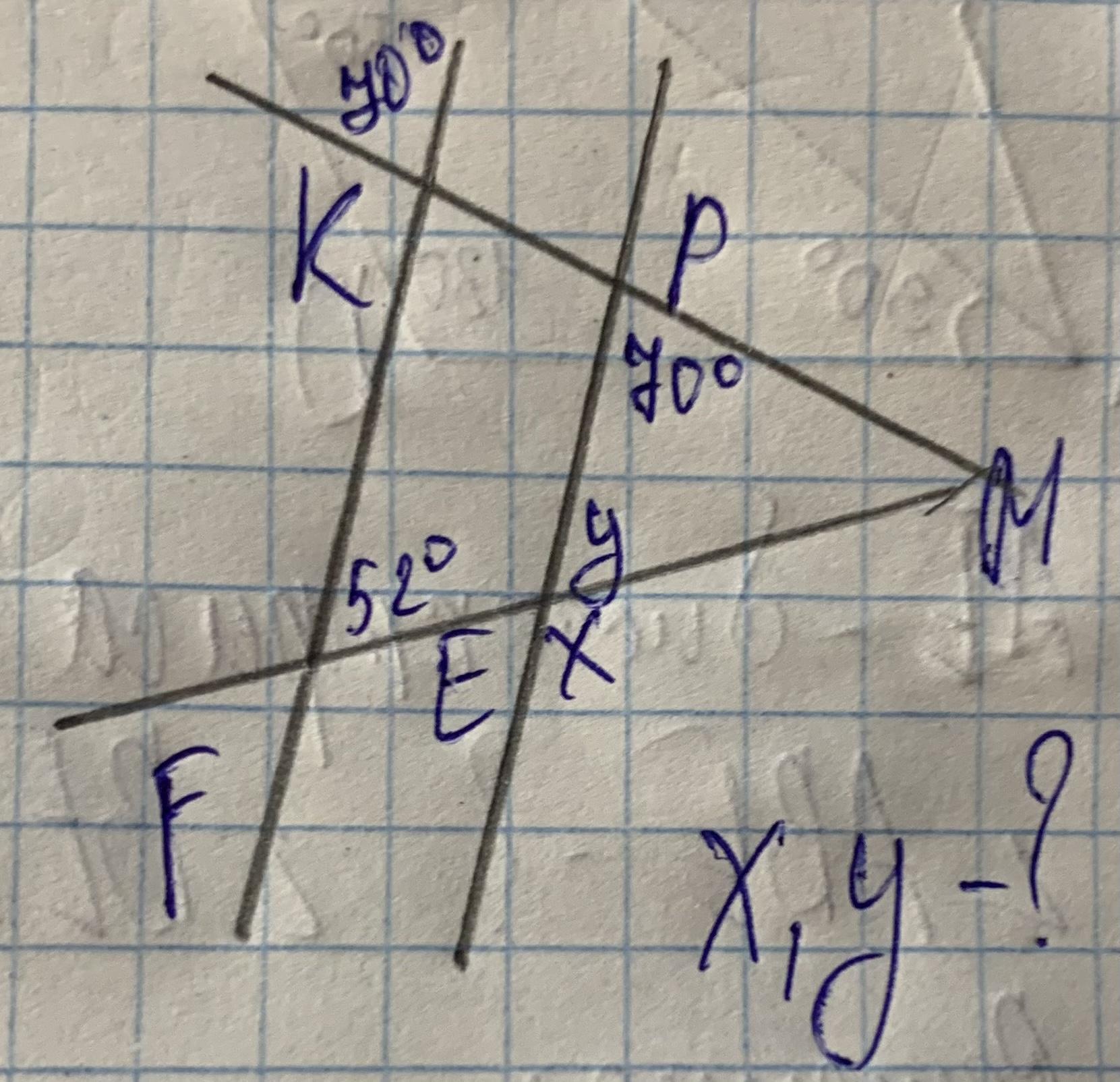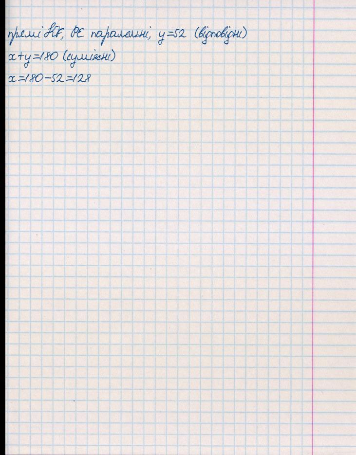 прямі KF, PE паралельні, у=52 (відповідні)