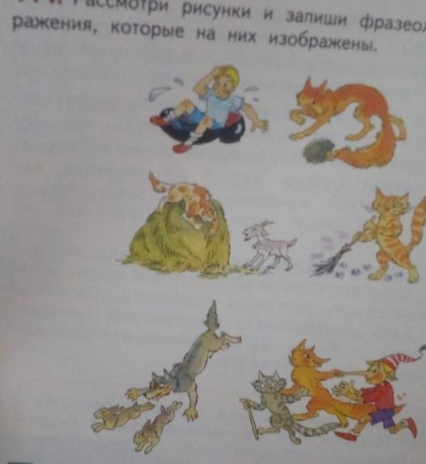 14. Рассмотри рисунки и запиши фразеологические выражения, которые на них изображены.Спасибо!