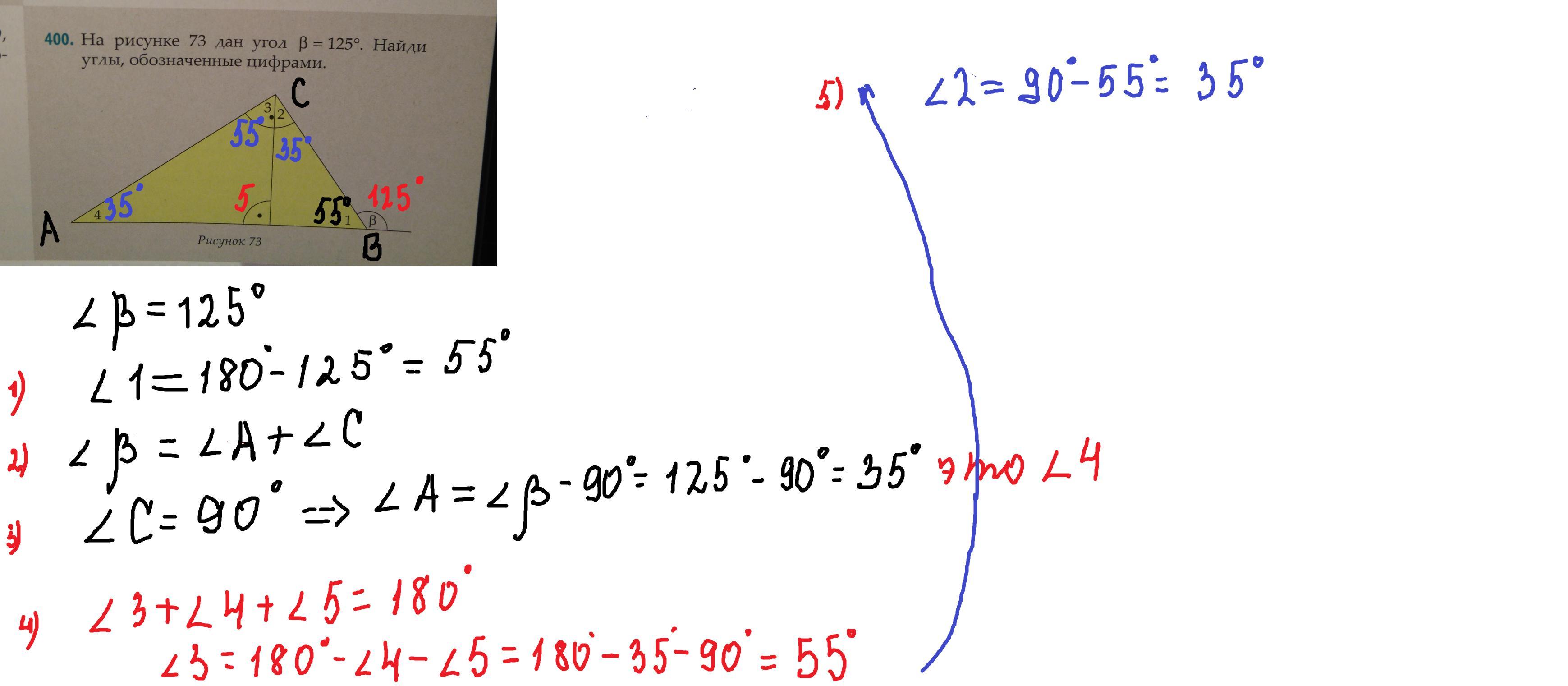 5.угол С равен сумме углов 2 и угла 3 ,т.к С прямой и зная угол 3 найдем угол 2.
