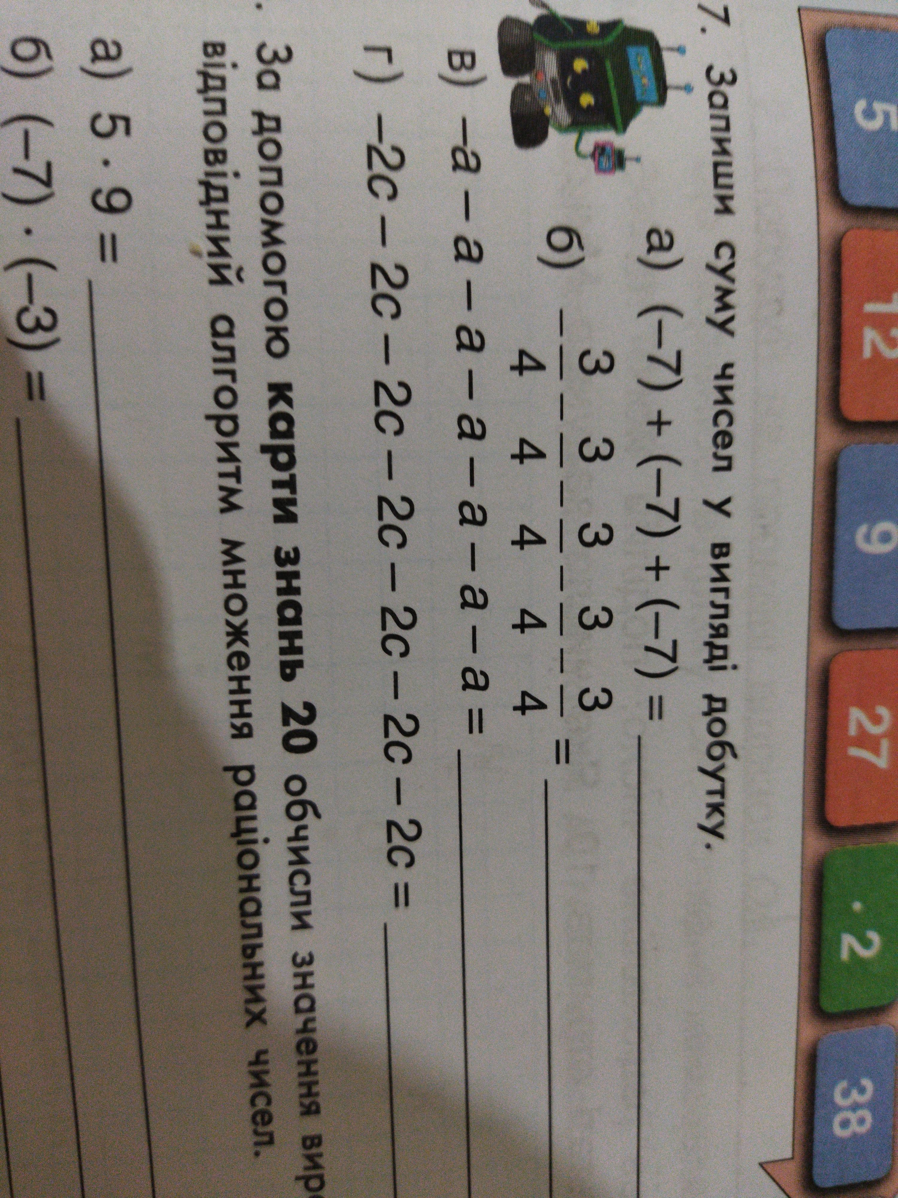 Запиши суму чисел у вигляді добутку (-7)+(-7)