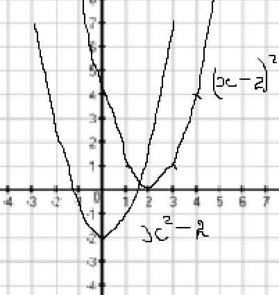 Б) В функции y = x² - 2 , как я говорила график уходит вниз на 2 отметки , а в y = (x-2)² парабола уйдет вправо на 2 отметки.