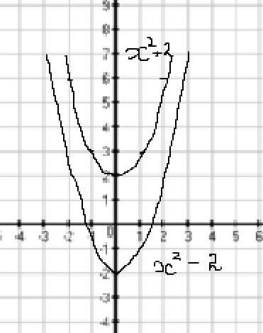 А) В функции y = x² + 2 парабола уходит вверх на 2 отметки, а в функции y = x² - 2 вниз на 2 отметки