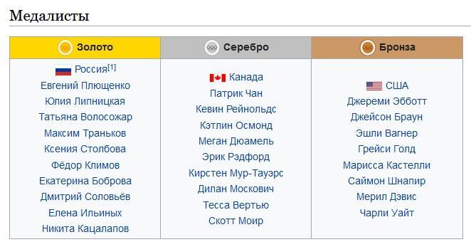 Представители какой команды стали победителями командного первенства в фигурном катании на коньках на XXII зимних Олимпийских играх в Сочи?