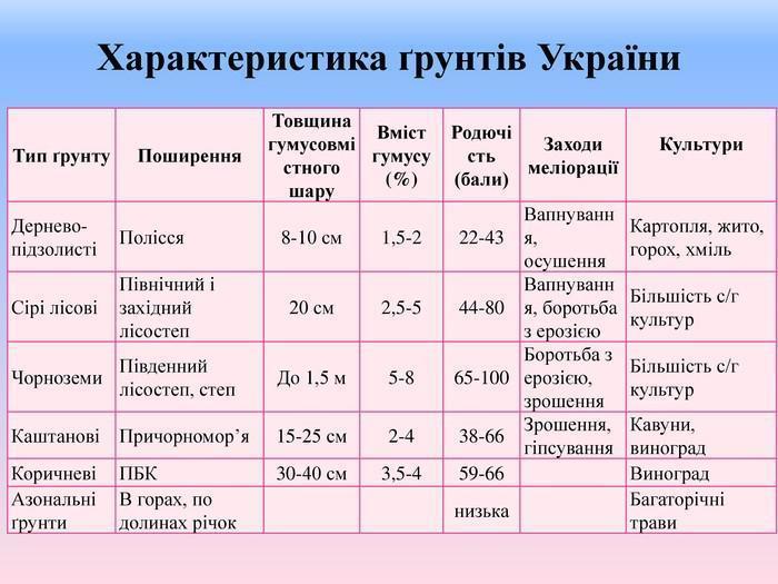 Відповідь/Висновок: Родючість у кожного грунту своя: азональні грунти є набагато бідніші на родючість ніж чорноземи. Причини відмінності: вміст гумусу та клімат, які забезпечують родючість. На жаль, вплив сільськогосподарської діяльності негативно впливає на грунт. Він втрачає родючість через багаторазовий обробіток різними знаряддями за допомогою потужних і важких тракторів. Також грунт виснажується через вирощування рослин.