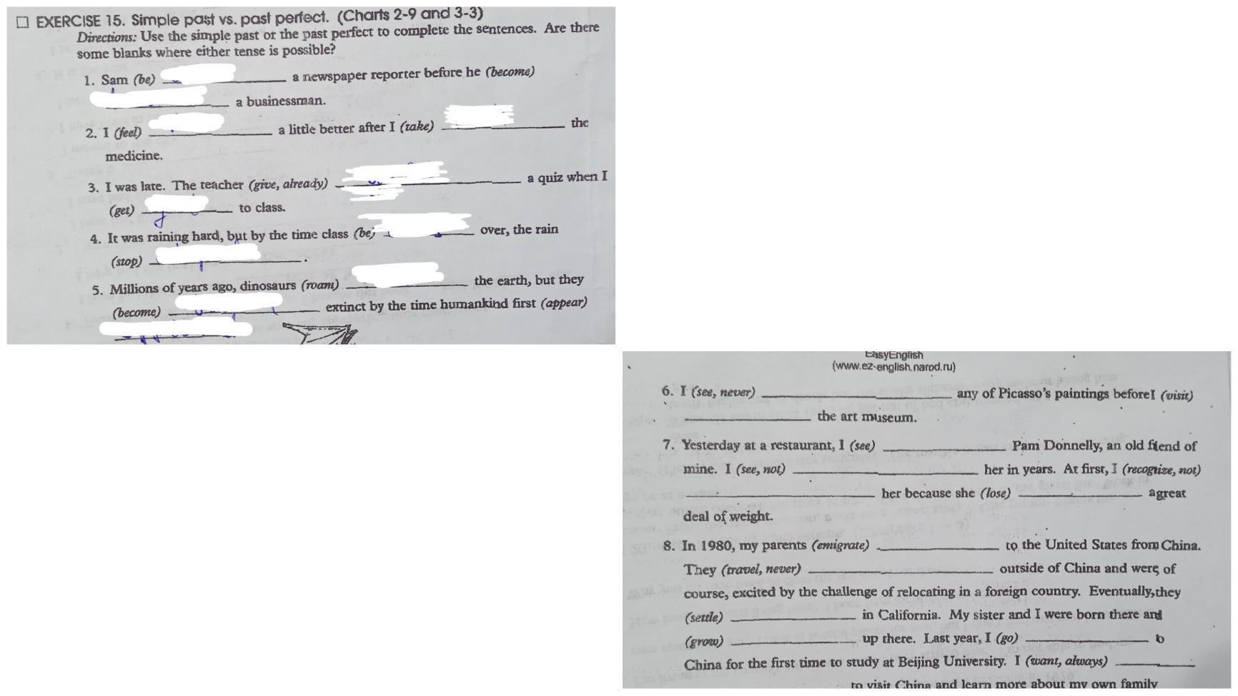 8.emigrated,had never been travelling, settled, had been growing, went, alvays wanted