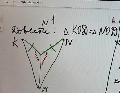 Нам дано, що в цих трикутниках рівні кути: KOD і NOD. Також в них рівні сторони KO i NO. Сторона DO в них спільна. Тоді за другою властивістю рівності трикутників (за двома сторонами та кутом між ними) ці трикутники рівні.