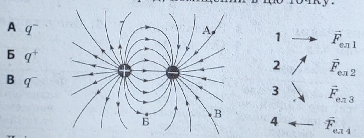3 Установіть відповідність між точкою елек- тричного поля (див. рисунок) і напрямком сили, яка діє на заряд, поміщений в цю точку.