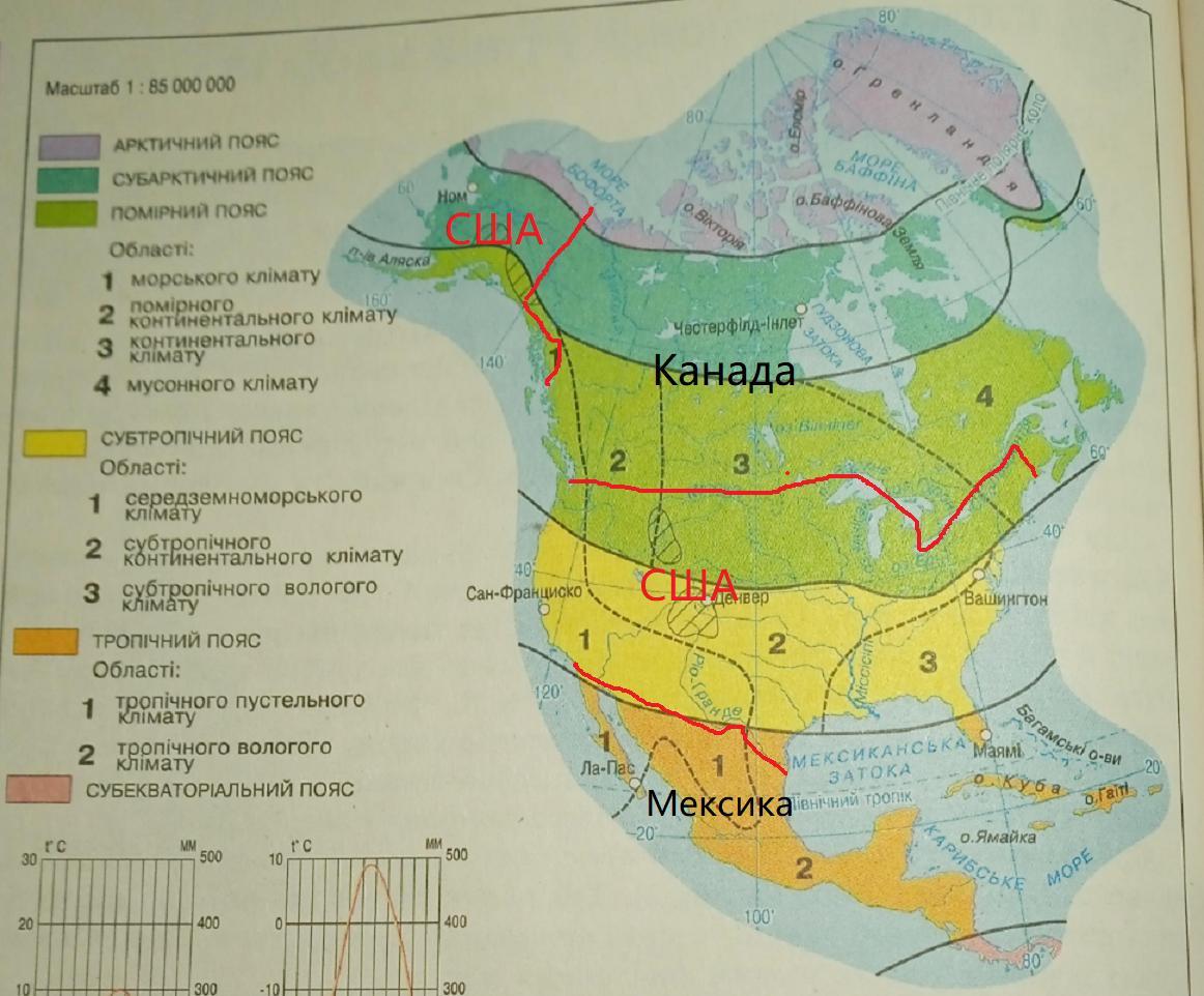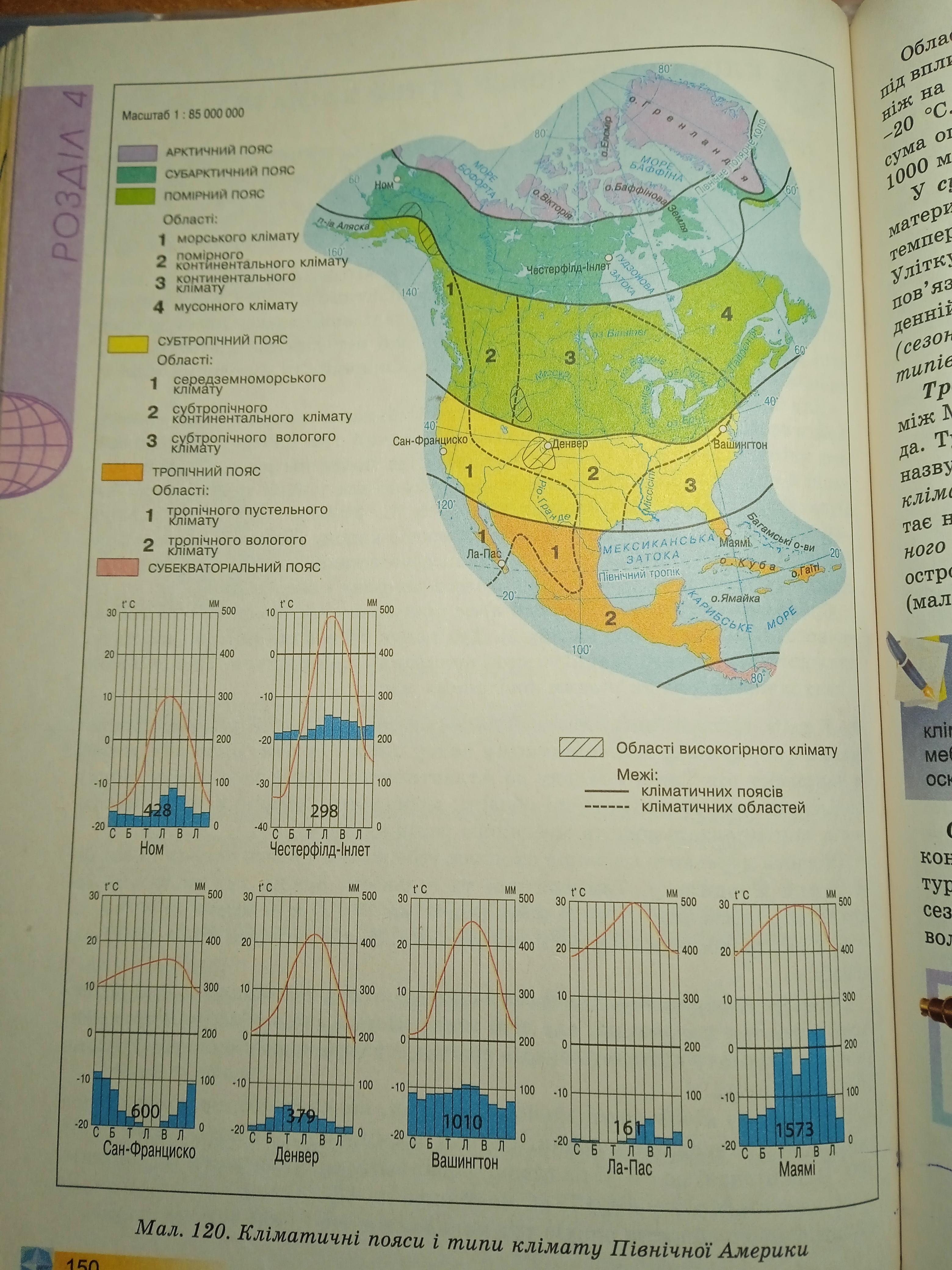 За малюнком 120 та картами атласу визначте, у межах якої країни Північної Америки клімат найбільш різноманітний.