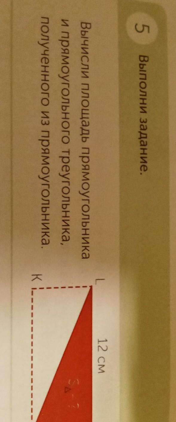 Посчитай сам. Умножь одну сторону на другую, это будет площадь прямоугольника. Подели это на 2 и получишь площадь треугольника