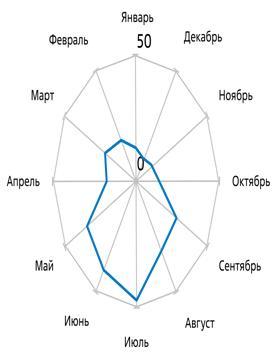 Определите по диаграмме, в каком месяце было продано минимальное количество товара.