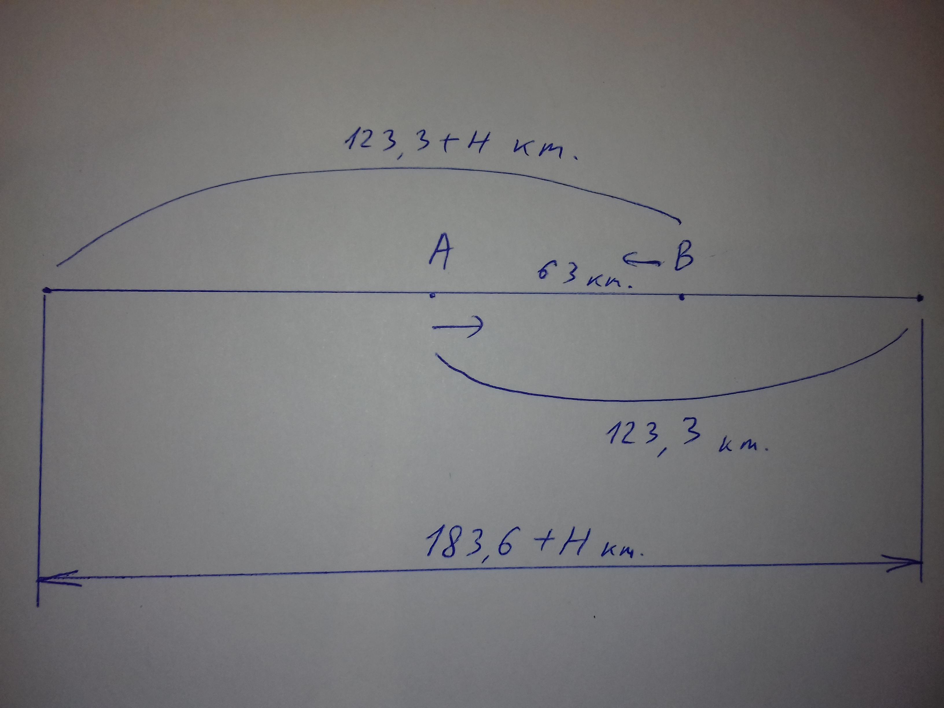 123,3 + ( 123,3 + Н ) = 246,6 + Н км.
