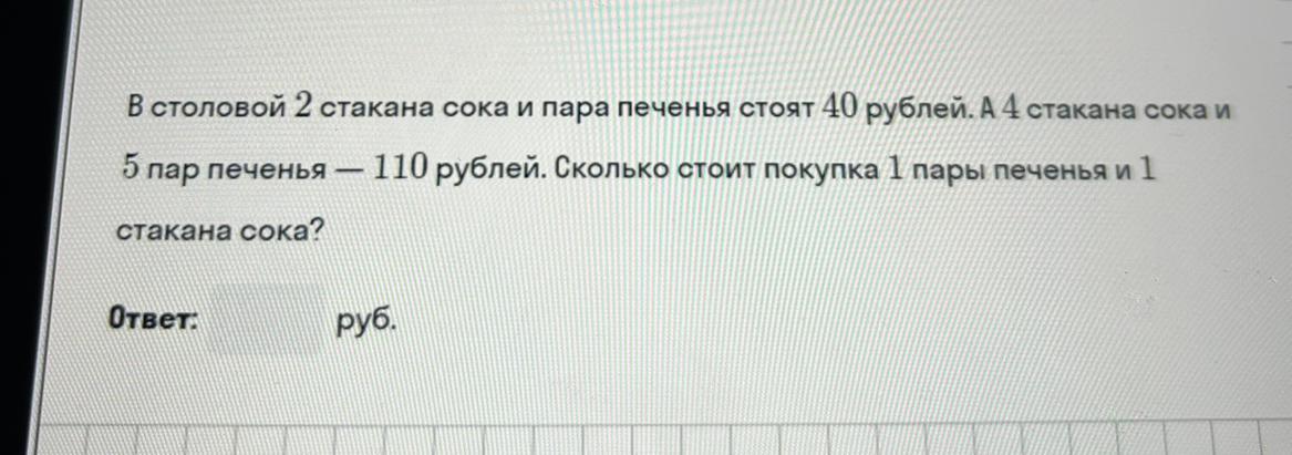1. 40×2=80руб -4 стакана сока и 2 пары печенья