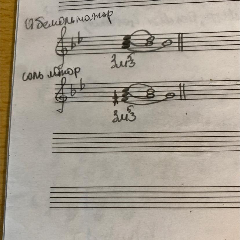Побудувати 3м 53 у Сі-бемоль мажорі та соль мін.гарм. Сольфеджіо 5 клас