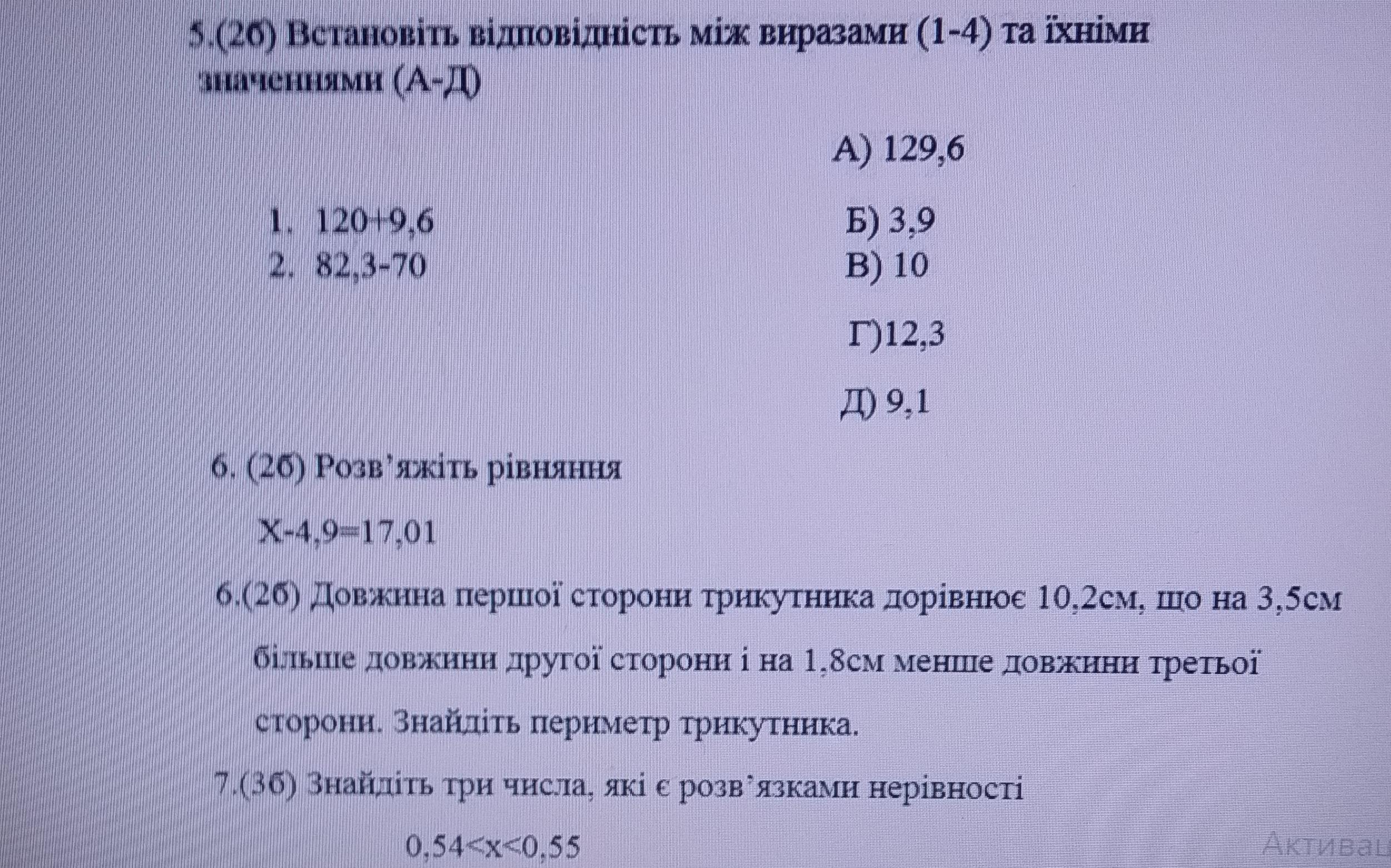 А можешь дать ответ там где 8. (3б.)Знайдіть три числа, які є розв'язками нерівності 0,54