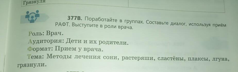 Поработайте в группах.Составьте диалог,используя приём РАФТ.Выступите в роли врача