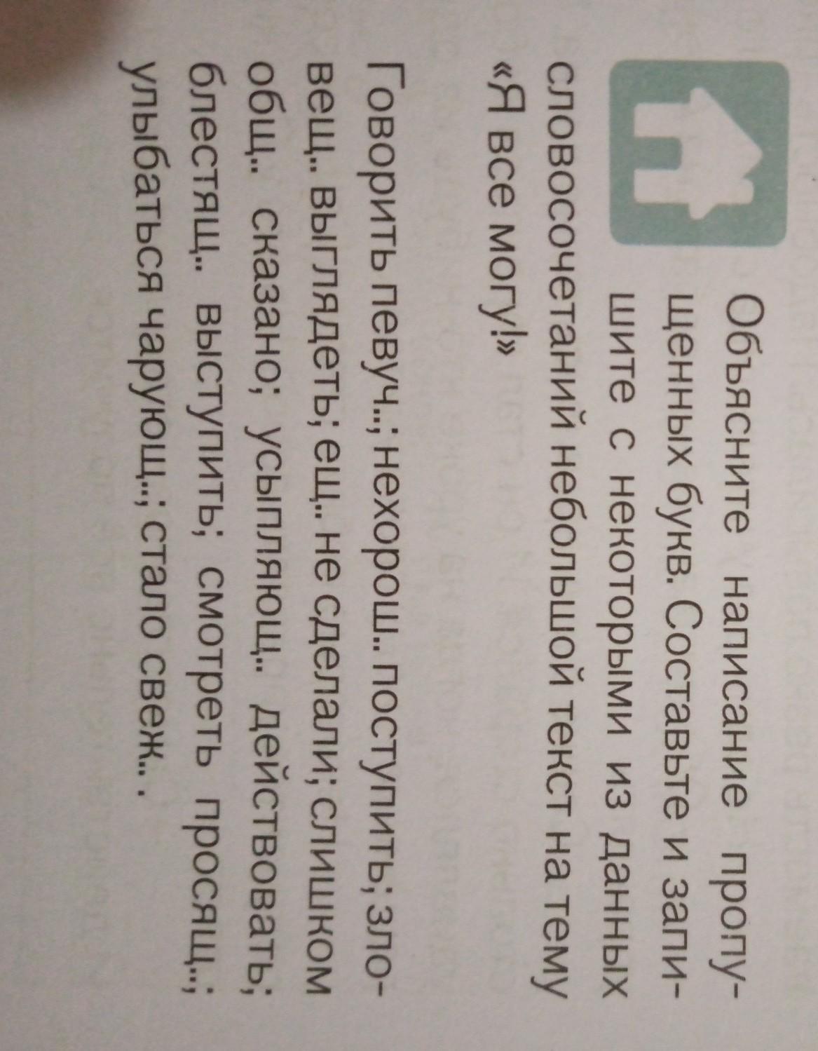 Объясните написание пропущенных букв Составьте и запишите с некоторыми из данных словосочетаний небольшой текст на тему Я всё могу