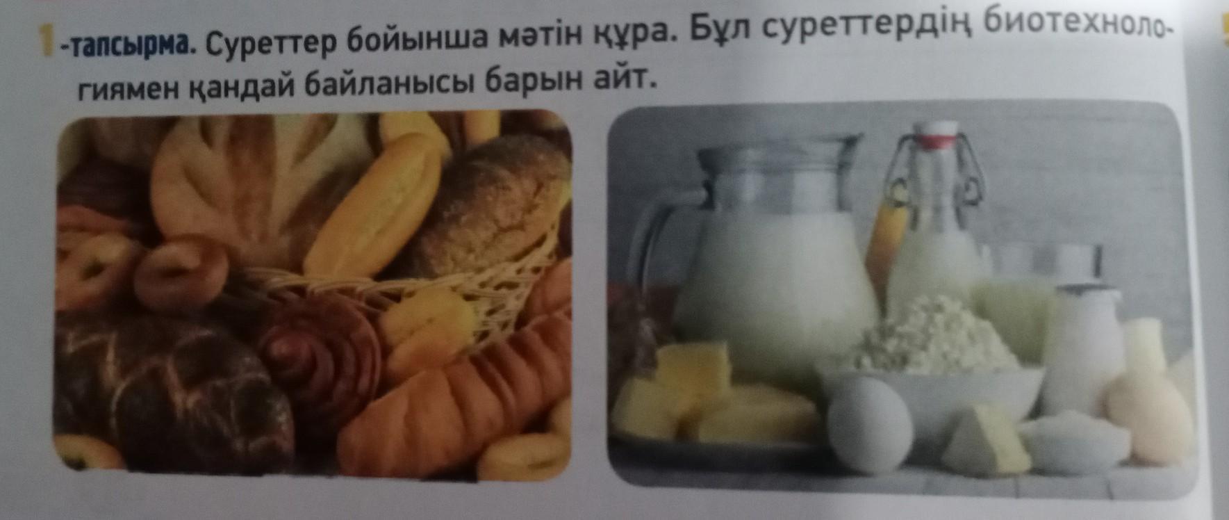 1-тапсырма Сүреттер бойынша мәтін құра. Бұл суреттердің биотехнологиямен қандай байланысы барын айт.