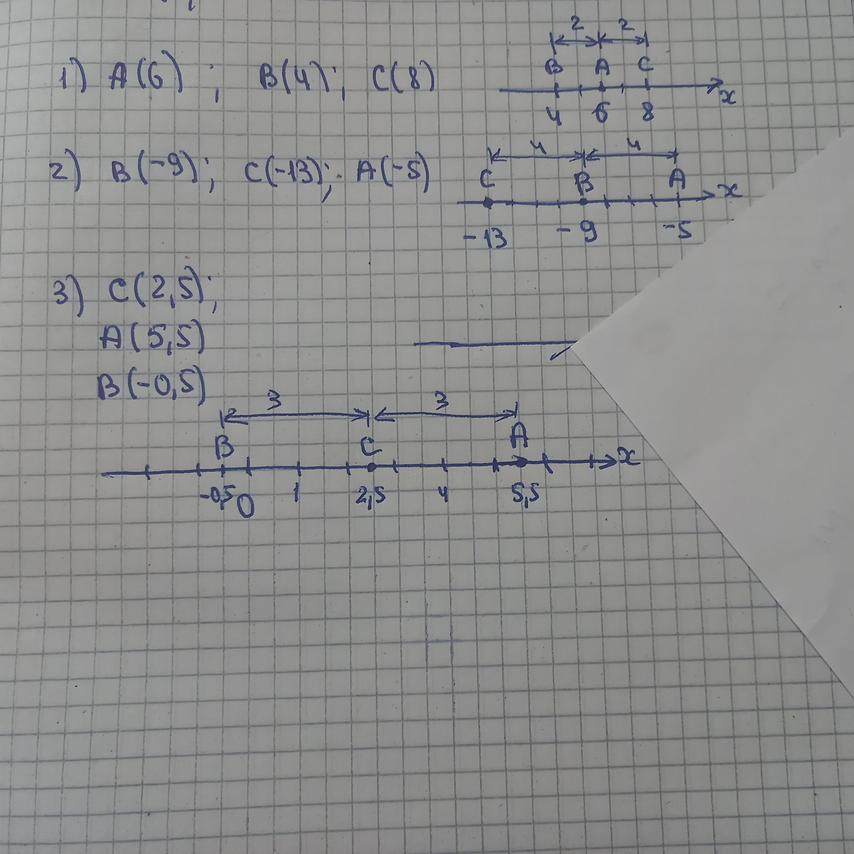 Запишіть координати точок, що знавідстані: 1) 2 од. від точки А (6); 2) 4 од. від точки В (-9); 3) 3 од. від точки С (2,5)