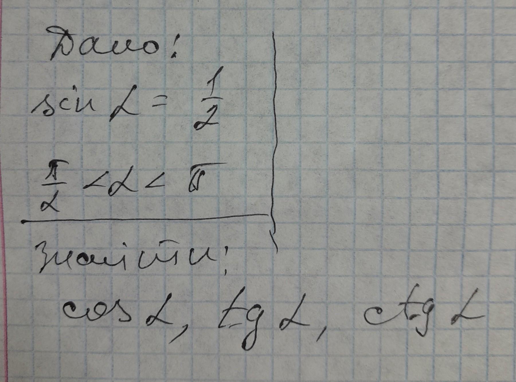 (Даю 30 балів!!!) Знайти решту тригонометричних функцій, якщо (див. дано нище).